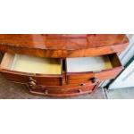 A circa mid-Victorian mahogany four drawer bow-fronted chest of drawers with original wooden knob handles - featuring bone inlay lock surrounds - unique in the fact that this chest of drawers splits in half for ease of transport or storage if required 103Hx103Wx43D cm approx - condition a few scratch marks on the top and bottom drawer front but this does not detract from the overall appearance of this item.
