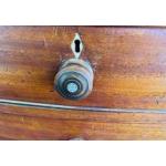 A circa mid-Victorian mahogany four drawer bow-fronted chest of drawers with original wooden knob handles - featuring bone inlay lock surrounds - unique in the fact that this chest of drawers splits in half for ease of transport or storage if required 103Hx103Wx43D cm approx - condition a few scratch marks on the top and bottom drawer front but this does not detract from the overall appearance of this item.