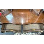 A VINTAGE console style table with two drawers and original key and brass ring-pull handles 82Hx90Wx44D cm approx - also included with this item is a vintage bi-folding dressing table mirror with bevelled-edge glass 88cm wide (when stretched out) x66H cm approx