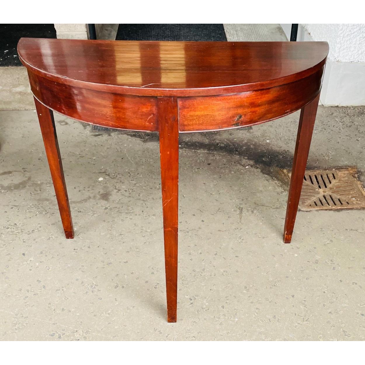 An ANTIQUE D-END demi-lune hall or lounge table - 90Lx42Dx73H cm approx - just prime for upcycling with fancy chalk paint!
