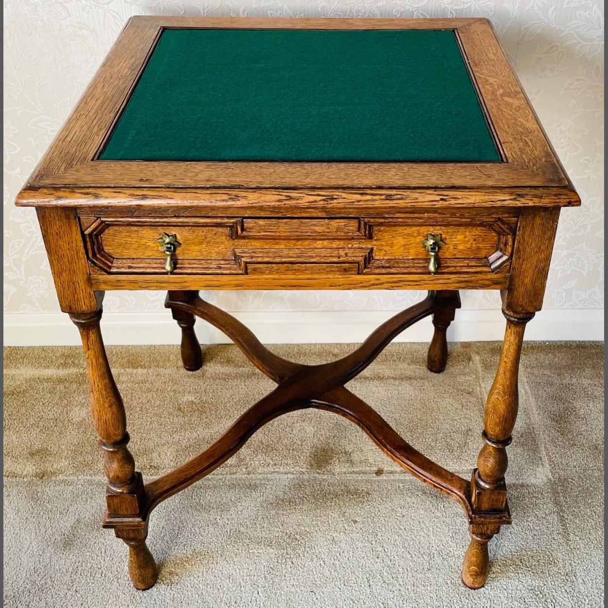 A nice VINTAGE OAK card table which converts to a tea table - UNUSUAL - 60cm square top x 73cm height approx