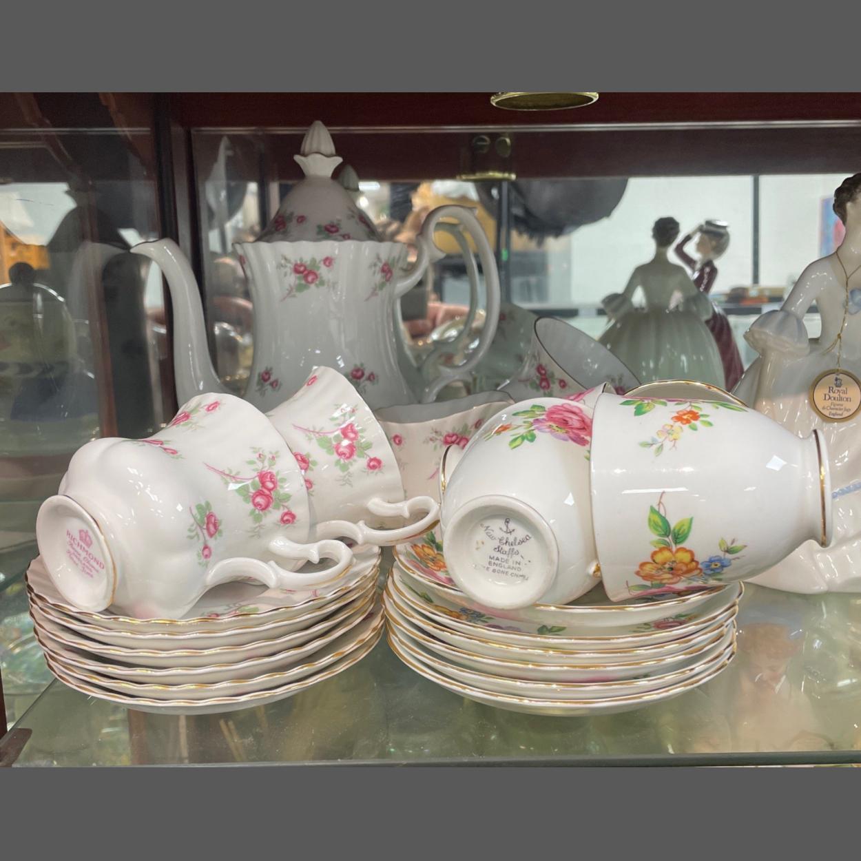 A vintage part RICHMOND 'Rose Time' bone china coffee service to include 4 coffee cans, 6 saucers, 1 creamer, 1 sugar bowl and 1 coffee pot plus a part NEW CHELSEA coffee set comprising 4 coffee cans and 6 saucers