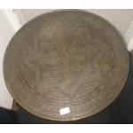A brass topped BENARES table( (which folds away) diameter 60cm x height 58cm approx