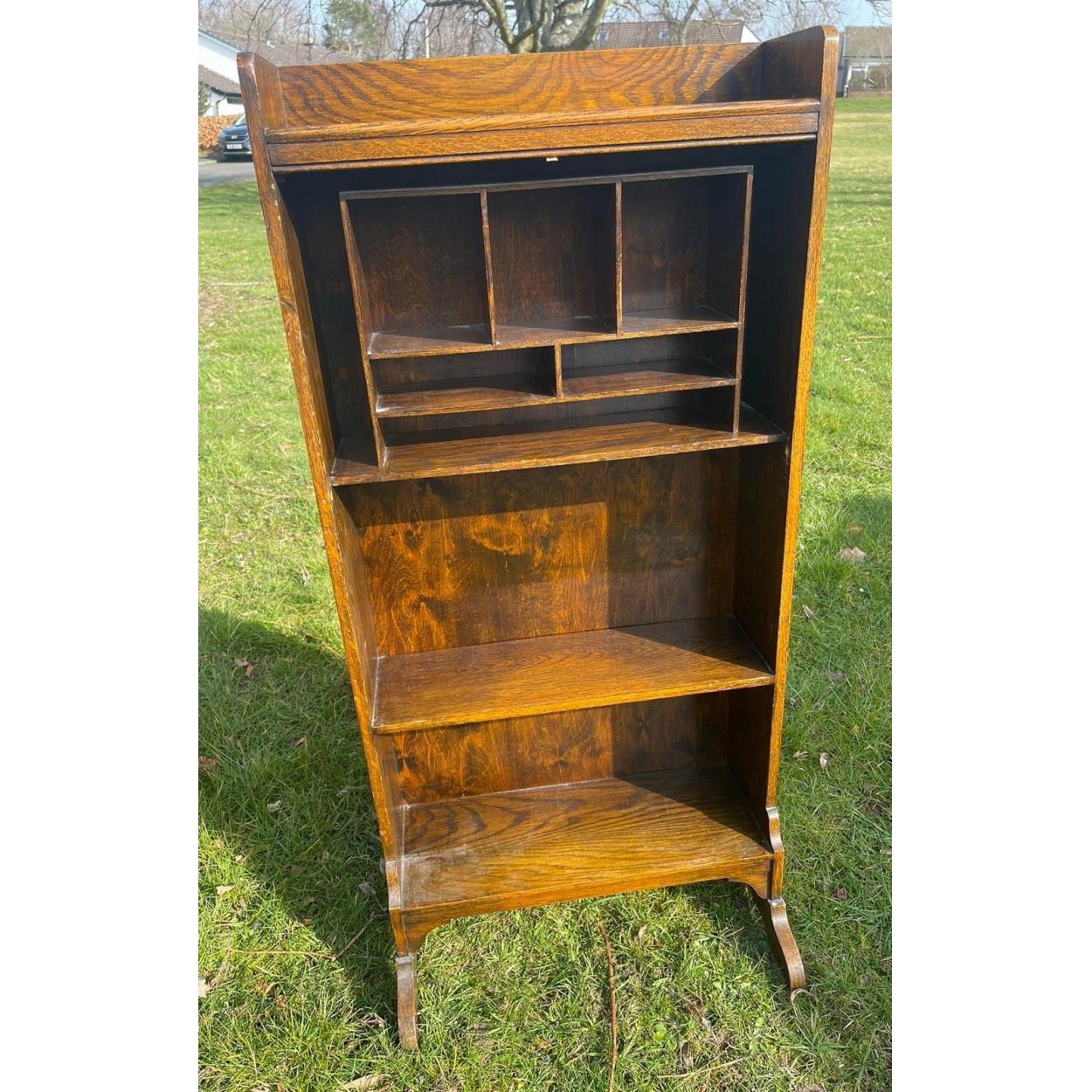 A VINTAGE OAK bookshelf and display shelf in one! - dimensions 150cm height x 56cm width x 17cm depth approx - IDEAL FOR UPCYCLING!