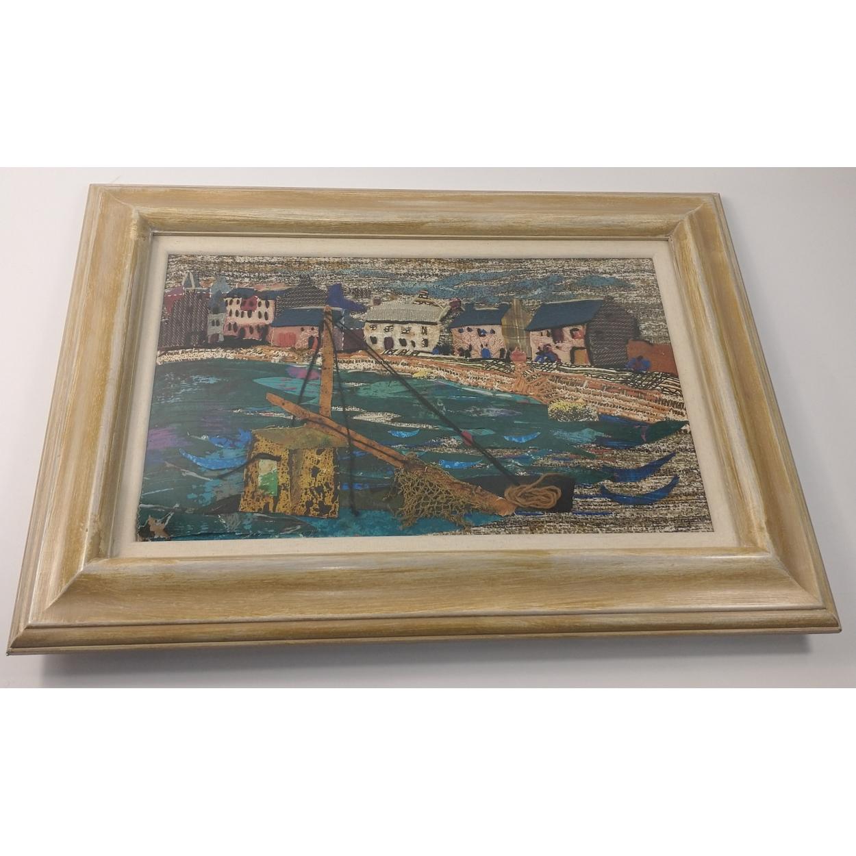 A FELT CLOTH and WOOL picture of STONEHAVEN HARBOUR by Annette Stephen dimensions 25cm x 35cm approx