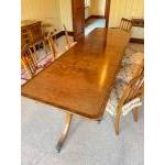 BEAUTIFUL FORMAL GEORGIAN STYLE DINING TABLE ON PEDASTAL LEGS with two extendable leaves extending to 284cm( 9ft) x 92cm width - each leaf width being 46cm to include also six marvellous dining chairs and two CARVERS