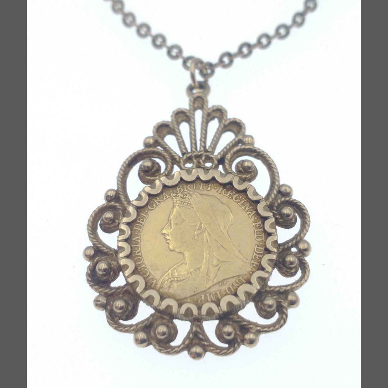 A VICTORIA 1900 HALF SOVEREIGN within a 375 stamped mount and a 375 stamped chain - weight 14g total approx
