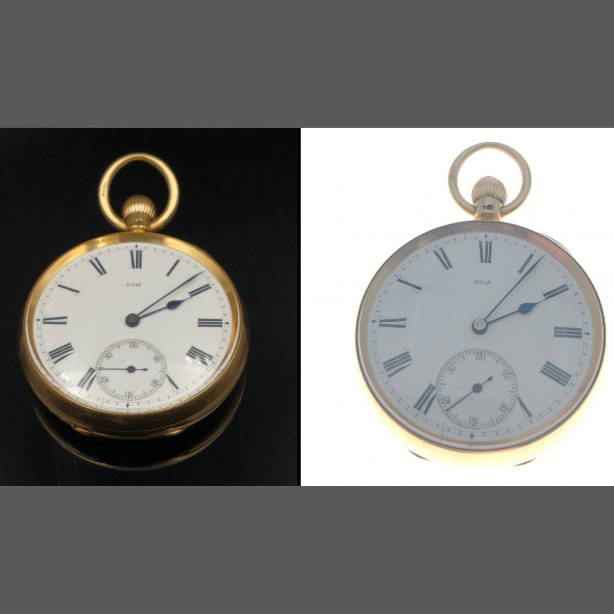 An 18ct LONDON HALLMARK stamped pocket watch in exceptional condition gross weight 83g approx 4.5cm diameter - the watch was ticking away quite happily on valuation!