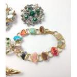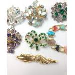 Seven pieces of costume jewellery to include 6 different stoned brooches and a multi-coloured stoned bracelet