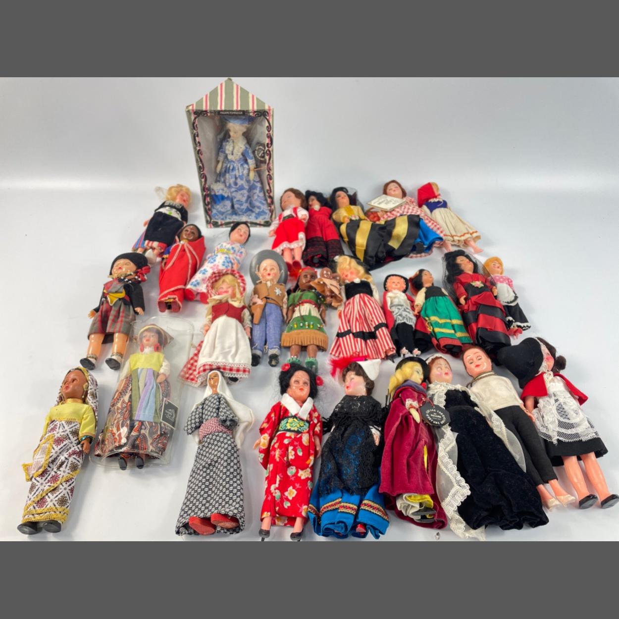 A selection of dolls of the world to include Indian, Arabic and a wee Scottish piper