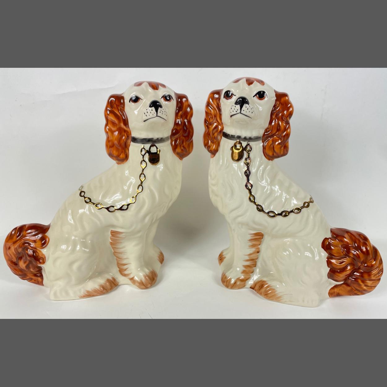 A pair of cream and brown wallie dugs made in Scotland height 29cm approx