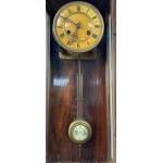 A 19th century eight day wall-mounted German pendulum clock with key, 67cm long approx