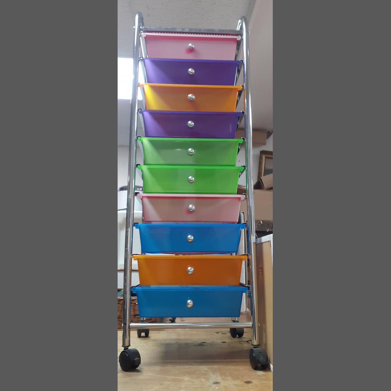 A 10 drawer multi- coloured storage unit on castors / height 3ft height x12†wide approx