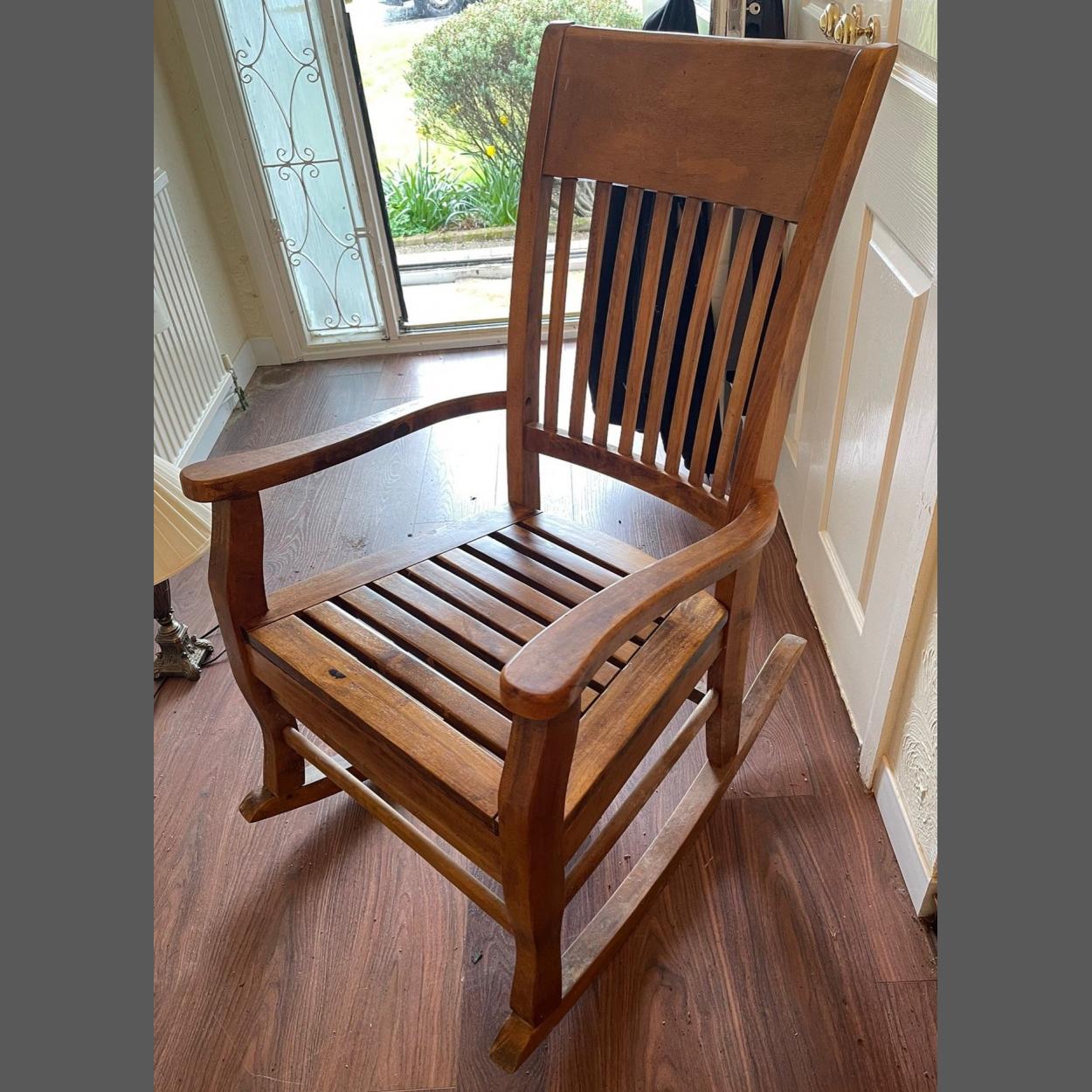 A BEAUTIFUL LARGE QUALITY TEAK effect ROCKING CHAIR - such good quality!! - dimensions height from floor to top of chair 100cm x width 65cm x