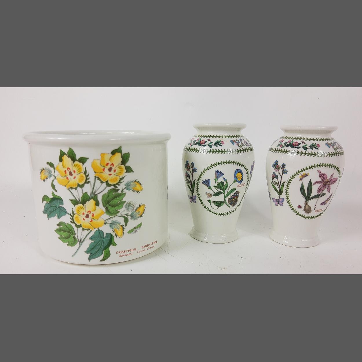 A PORTMEIRION plant holder from the Botanic Garden collection (16cm dia x 13cm high) and 2 'Variations' vases 14cm high