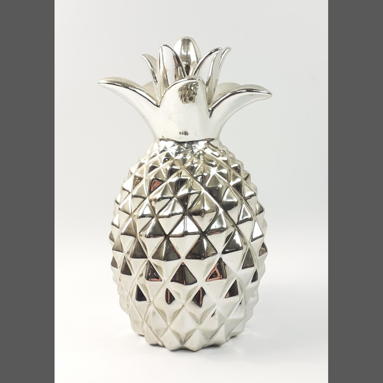 A shiny silvered ceramic pineapple - serves no purpose but looking good, stands 25cm high