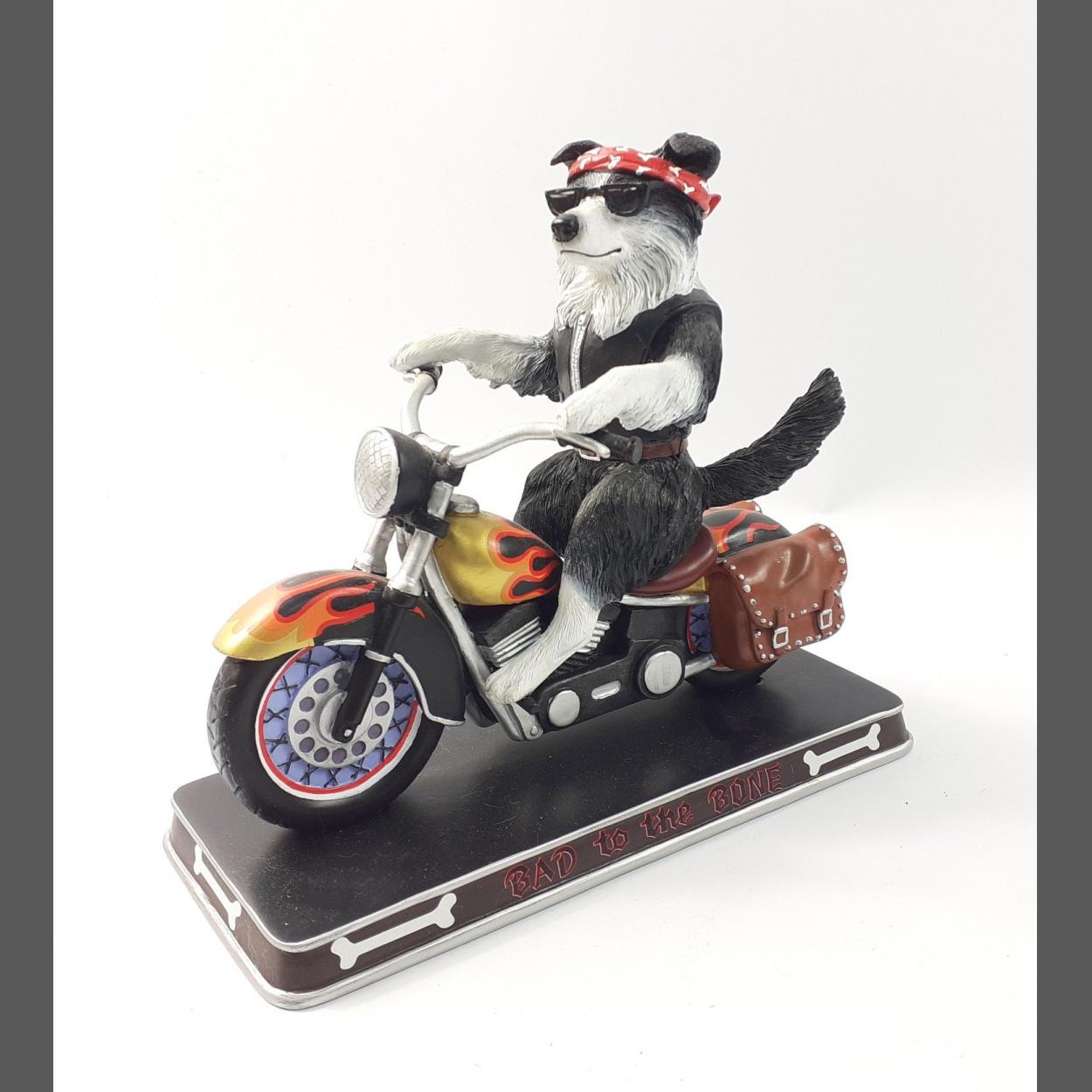 A BAD TO THE BONE collie on a motorbike