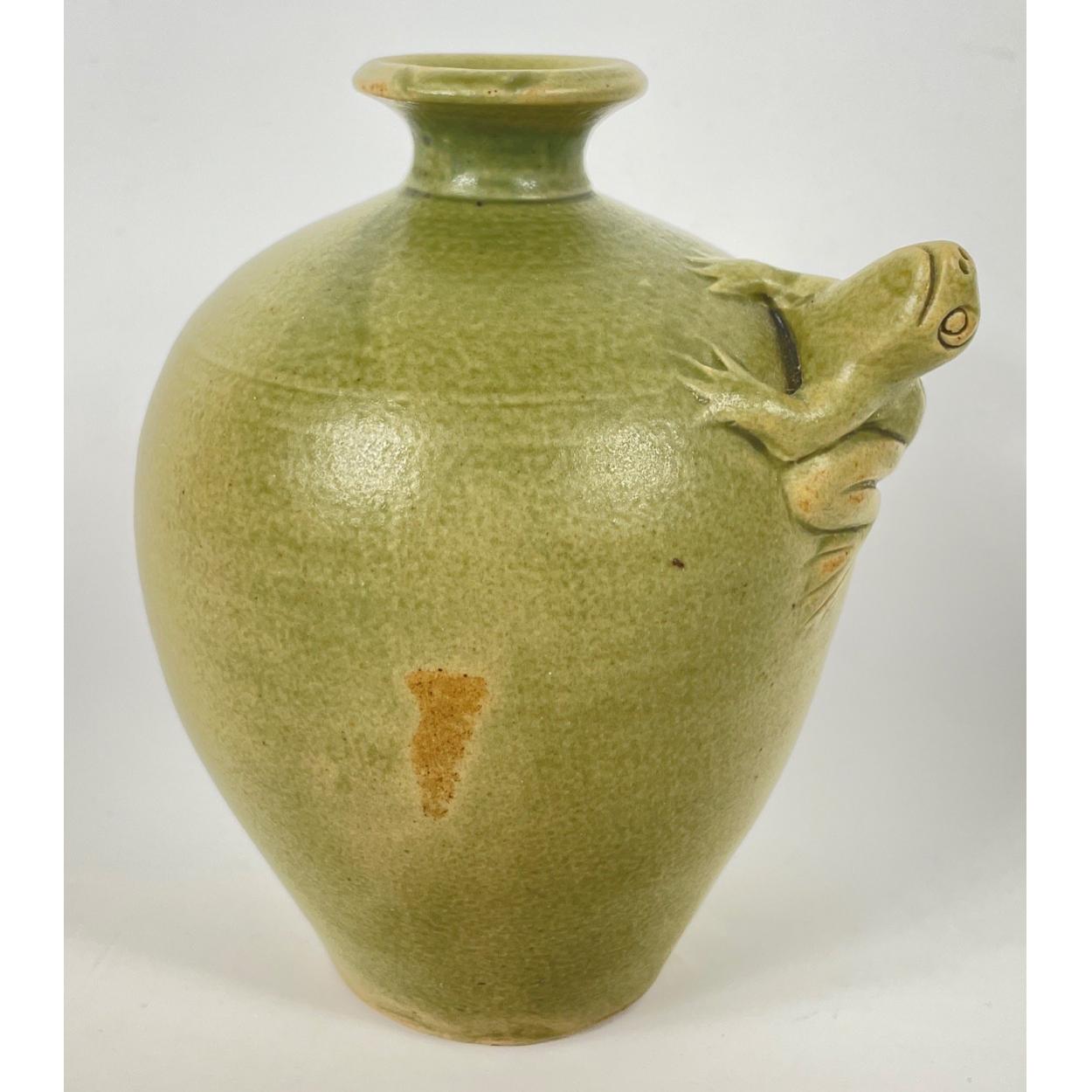 QUIRKY - An old pottery vase with a frog