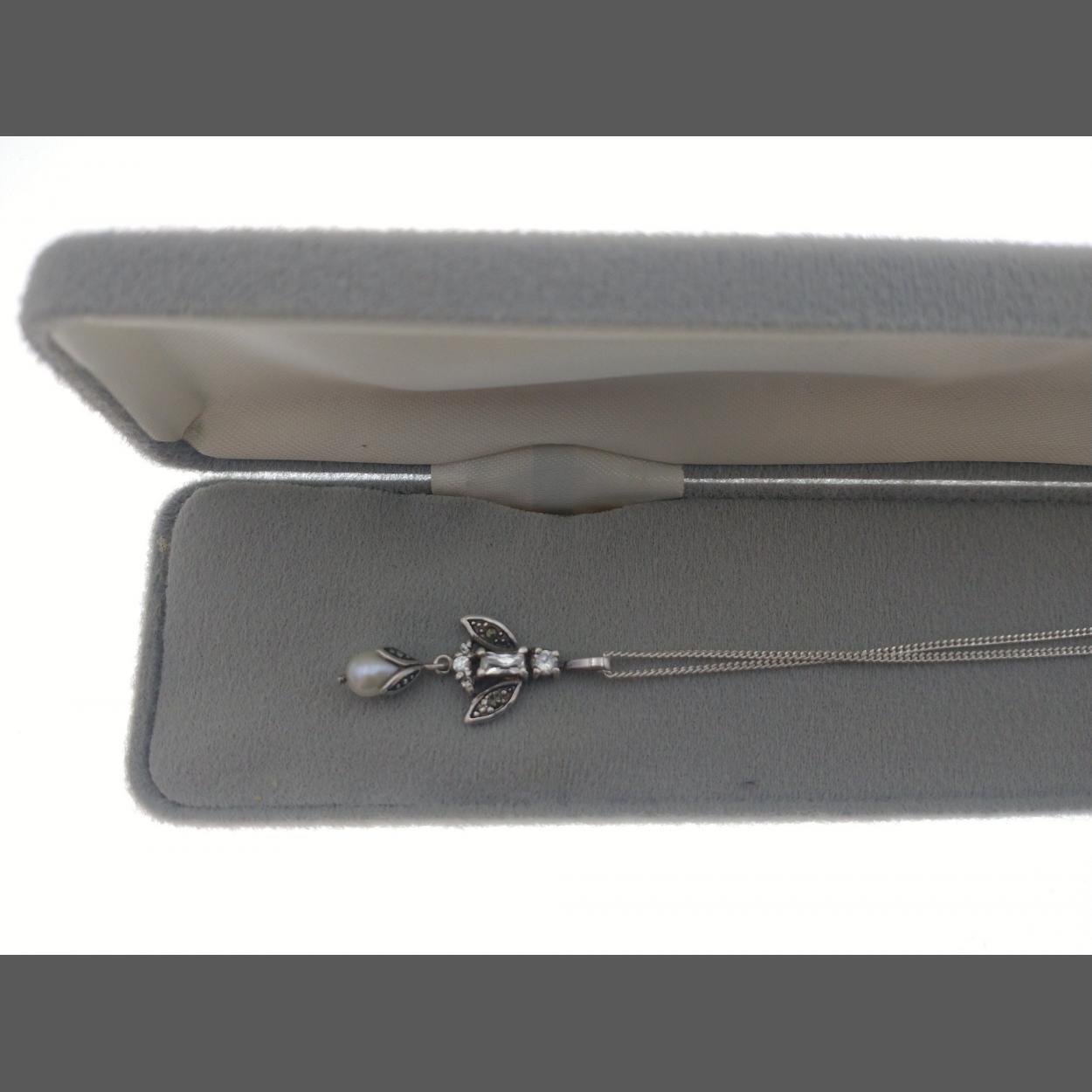 A 925 silver stamped Next pendant and chain with a marcasite and pearl drop 38cm long weight 4g