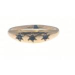 Three 9ct rings to include a four bar diamond set ring size R, a rectangular set smoky stone ring with clear stone surround size O and a three pale green stone set ring size L (centre stone missing) gross weight 5.08g