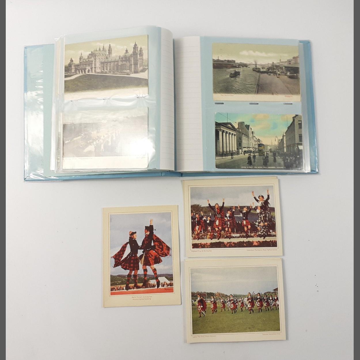 An old SCOTTISH & BORDERS INTEREST postcard album to include Scottish vintage towns and scenes and stately homes and landmarks etc approx 60-80 postcards