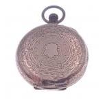 A pocket watch with gold coloured engraved face and Roman numerals, has K9 on inside of back cover (doubtful authenticity)