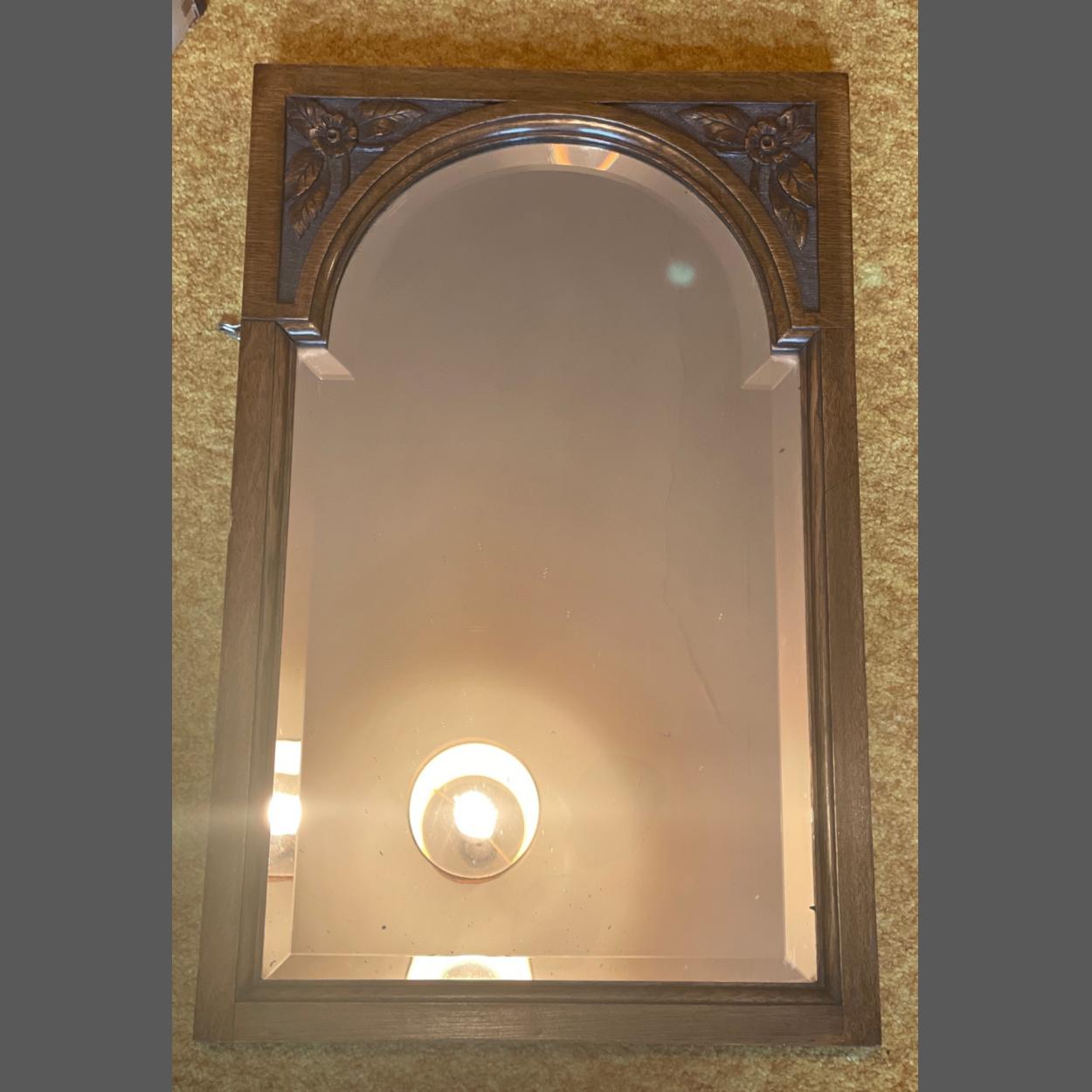 A VINTAGE rectangular hand carved wall mirror
