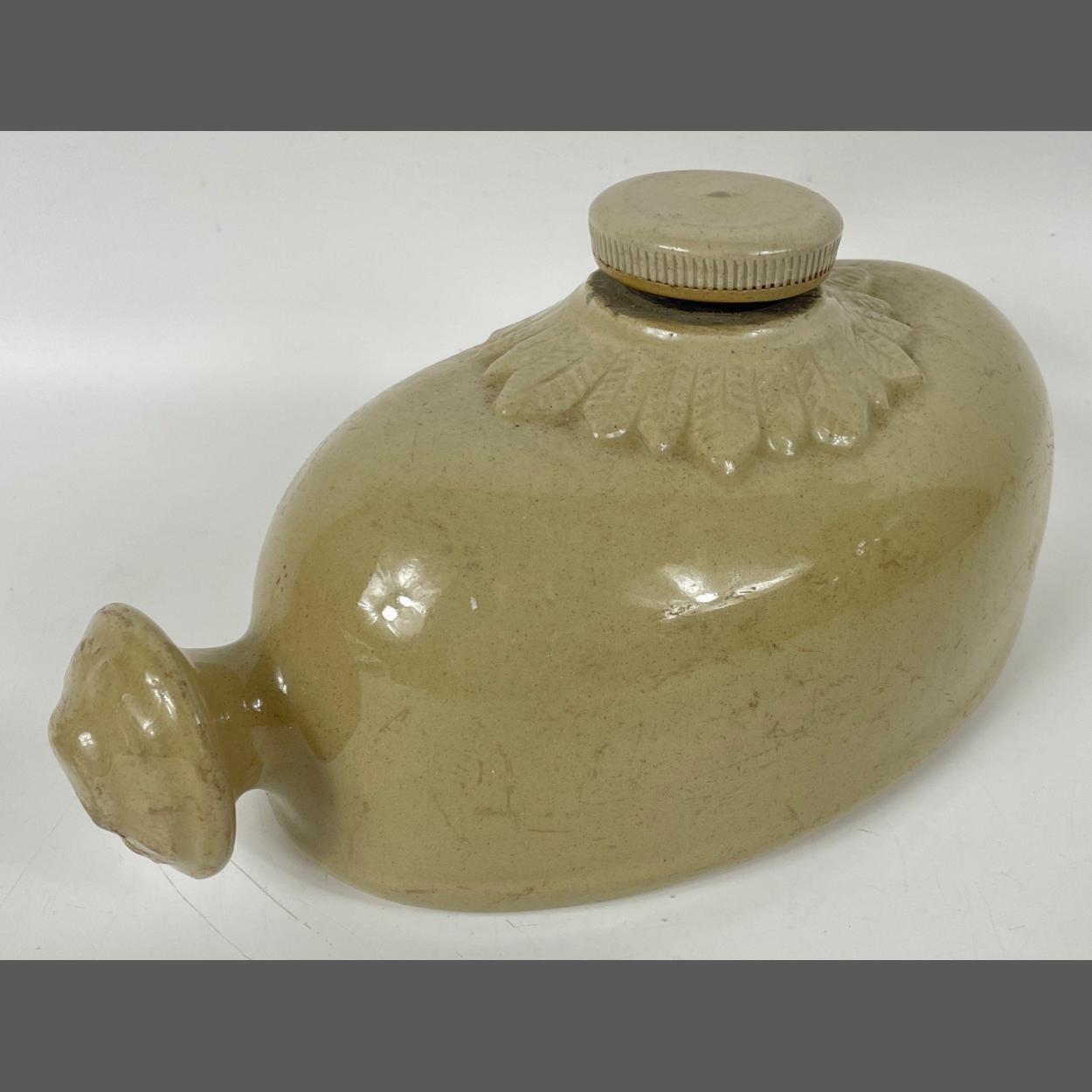 An attractive antique 1.5 pint DENBY stone hot water bottle/foot warmer 25cm long approx