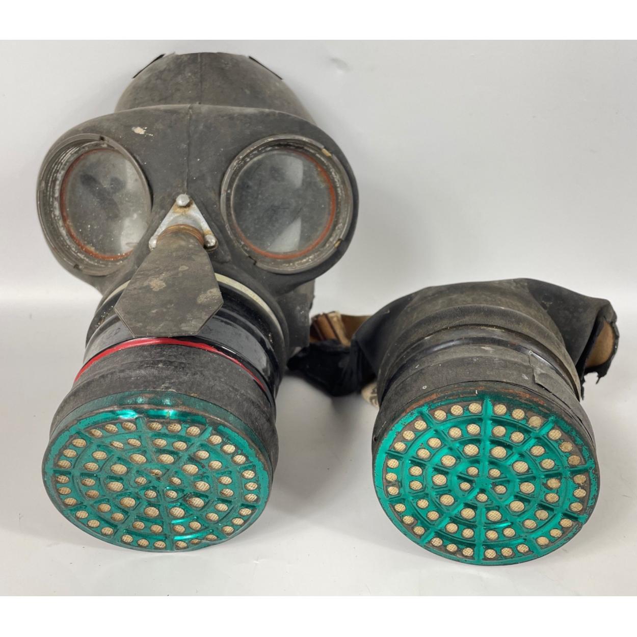 Two GAS MASKS, the first, in a fragile state, is a rare civilian single eyepiece respirator stamped L&BR Co 1937 LOT 2388B, the second with twin eyepieces is stamped STR 21 LOT 286 (unclear) PBC OCT 39