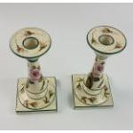 A pair of WEMYSS ware candle sticks, rose and briar leaf decoration, standing 18cm tall