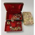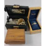 Four assorted jewellery boxes each containing a small quantity of costume jewellery and a boxed AVIA ladies watch