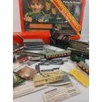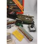 A HORNBY's FLYING SCOTSMAN electric train set missing the battery power module and a separate box with 3 TRI-ANG carriages 'Car no 79', 'Anne' and 'Jane' plus an engine with tender plus a further box with track, bridges etc as well as a HORNBY Duchess of Montrose engine and tender with 2 carriages and a MBIL transformer unit