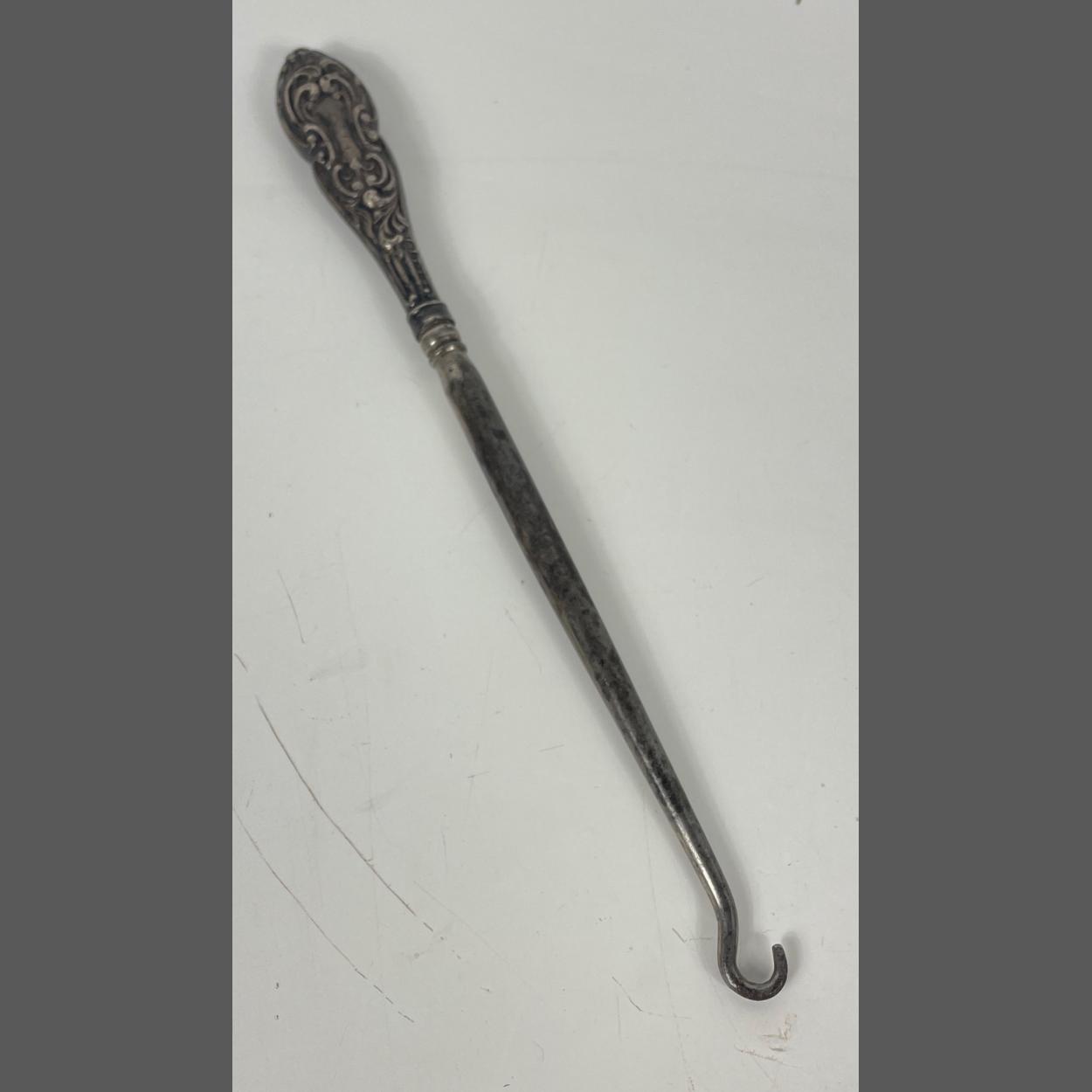 A vintage button hook with silver handle, Birmingham 1904, 20cm long, gross weight 44g