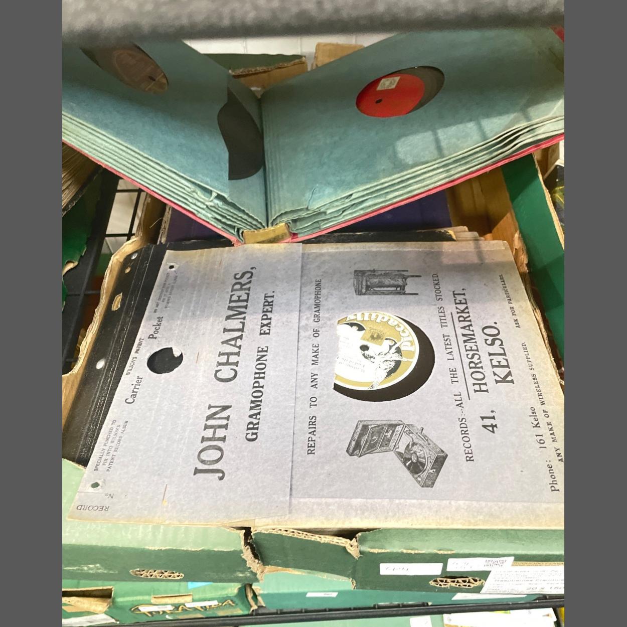 A boxful of 78rpm shellac records to include dance tunes by the BBC orchestra, Joe Loss and His Orchestra, Music and Song by Harry Lauder, a humorous monolgue by Stanley Holloway and many, many others
