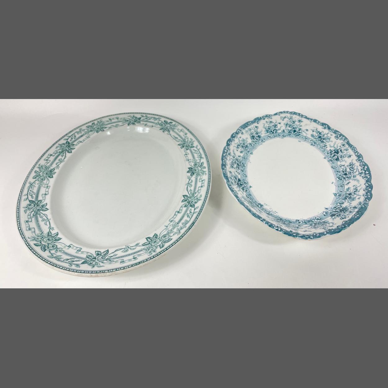 Two antique ceramic food platters, largest one 42cm length x 33cm width approx , smaller one WEDGWOOD Violet, 37cm length x 27cm width approx
