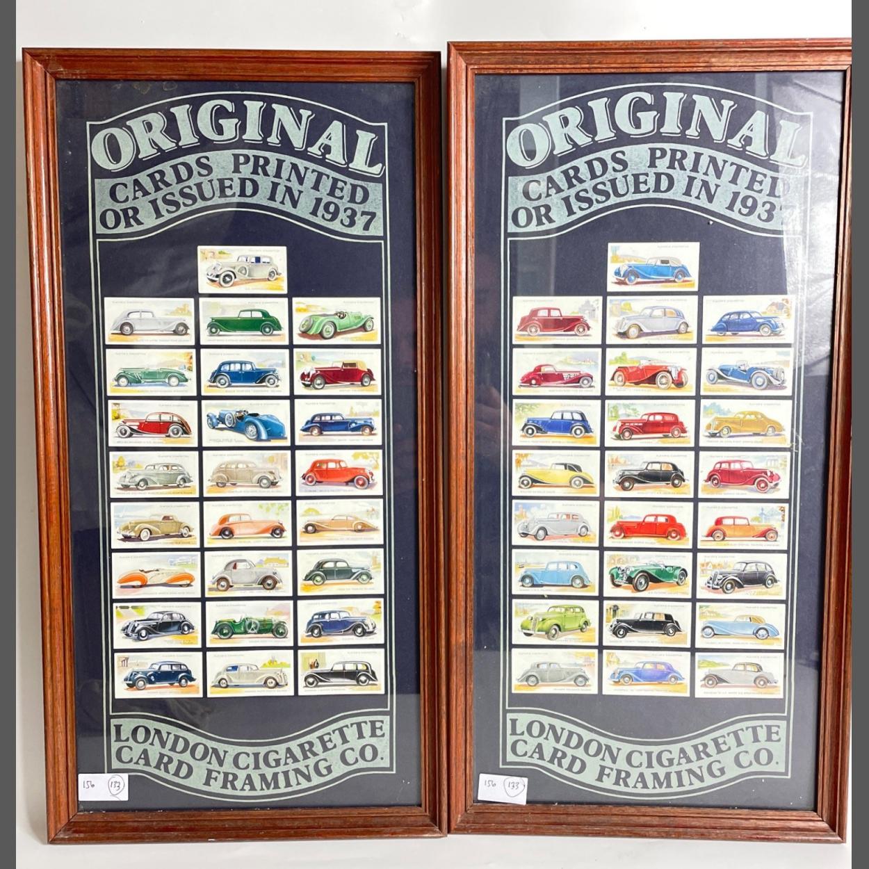 LONDON VINTAGE CIGARETTE CARDS of cars framed x 2 framed pics dimensions 60cm height x 31cm width each approx