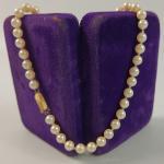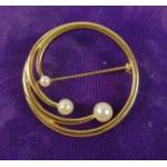 A string of pearls approx 40cm long with a 375 stamped hasp plus one brooch