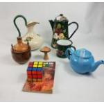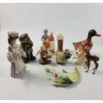 A LARGE LOT of various collectible ceramics including Disney, 2 coloured glass vases and a HCF LONDON figure vase as well as a wooden music box.