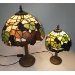 A pair of identical pattern Tiffany style table lamps one 36cm and the other 50cm tall