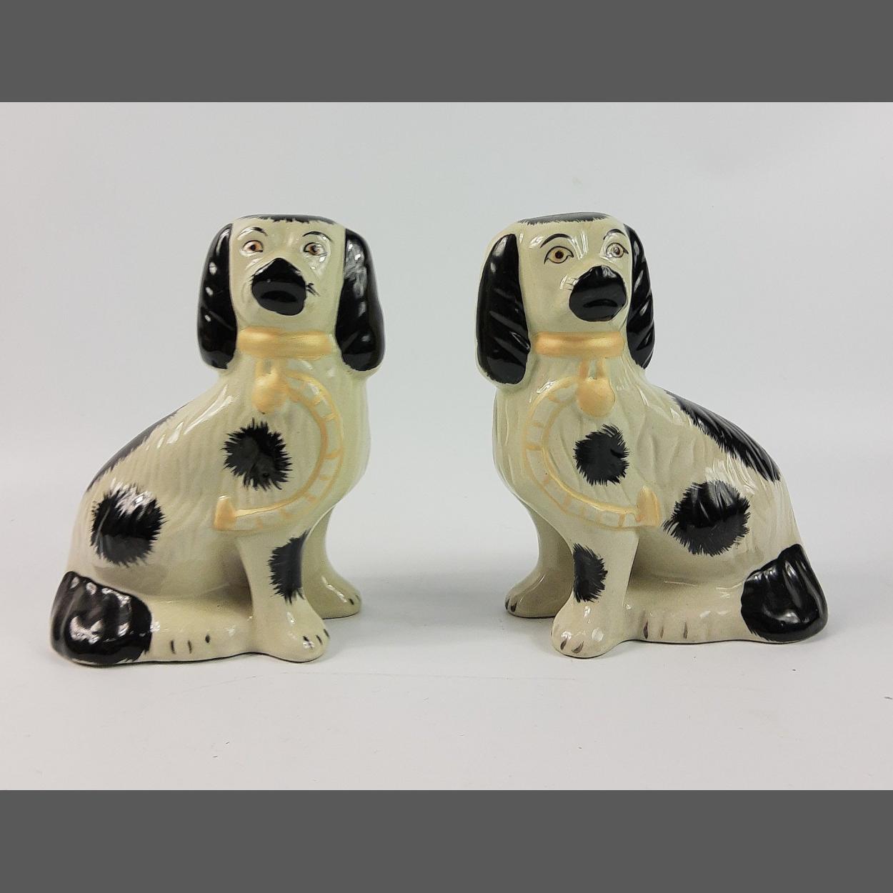 A small pair of black and white wally dugs standing 18cm tall