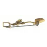 'THERE'S GOLD IN EM THAR HILLS' - A gold nugget and smaller gold nugget(Jeweller tested 22ct plus) with 'yellow metal' unmarked spade brooch(tested 14ct) on a base metal clip - 5cm length approx - gross weight 4.48g approx