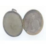 unmarked 'yellow metal' (jeweller tested 9ct) oval locket with metal liners -there is damage (a tear /crack) weight gross 2.53g approx