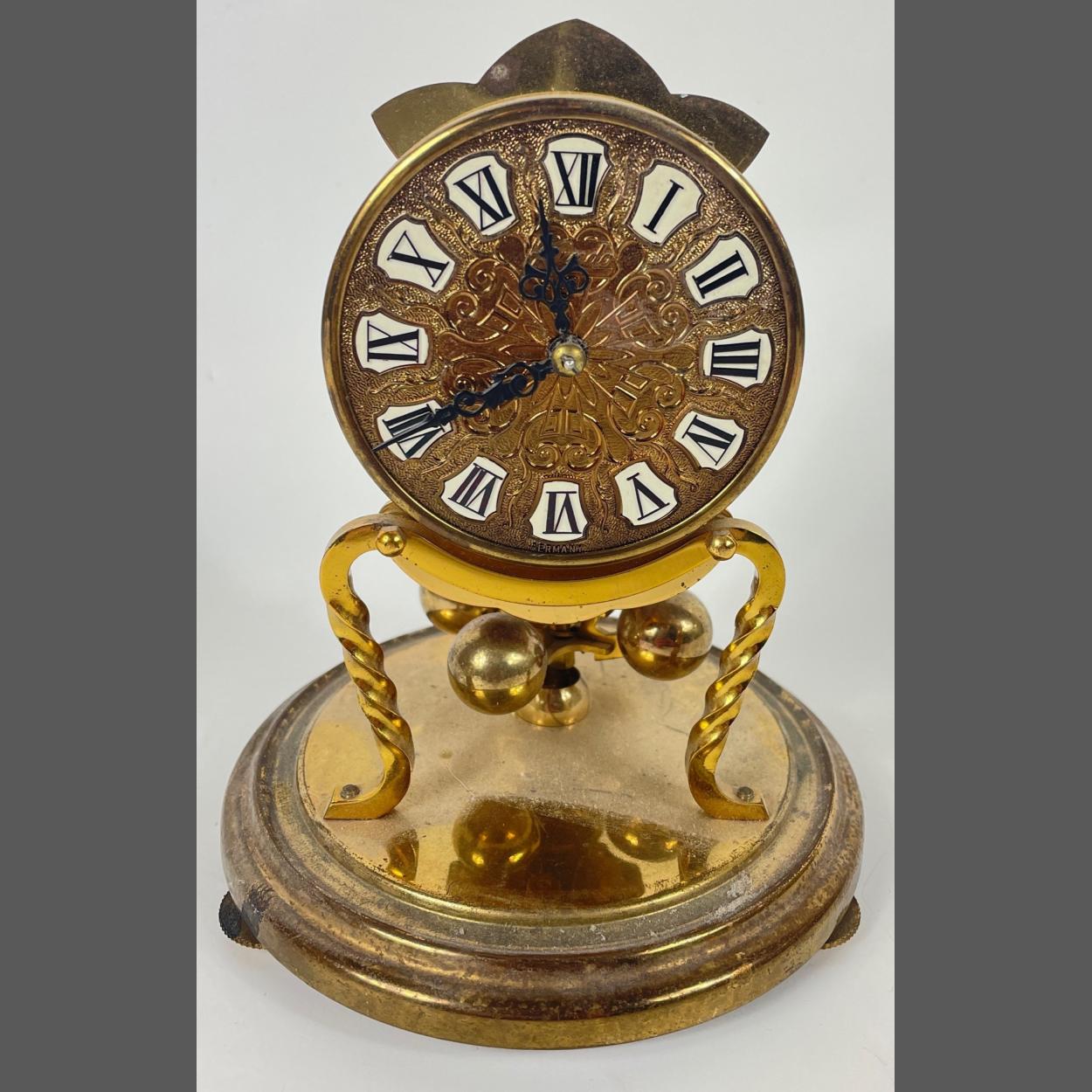 A KIENING and OBERGFELL 800 day clock minus its protective glass cover, stands 17cm high