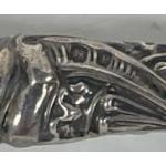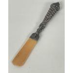 A small box labelled 'Rosemary for Remembrance' containing a child's teether with indistinct silver mark plus a rotating pencil,