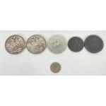 A small collection of coins to include two VICTORIA SILVER CROWNS, one dated 1891, the other 1889, in a used condition but not too worn, also a GEORGE lll SILVER CROWN dated 1820, A GEORGE Vl sixpence dated 1948, a 1790?/5?(date worn) dated GEORGE lll Half Penny, and a GEORGE lll RARE 1797 CARTWHEEL TWO PENNY COIN - worn with slight nicks out of the edge, but George lll still visible as is the Brittania and the date verso