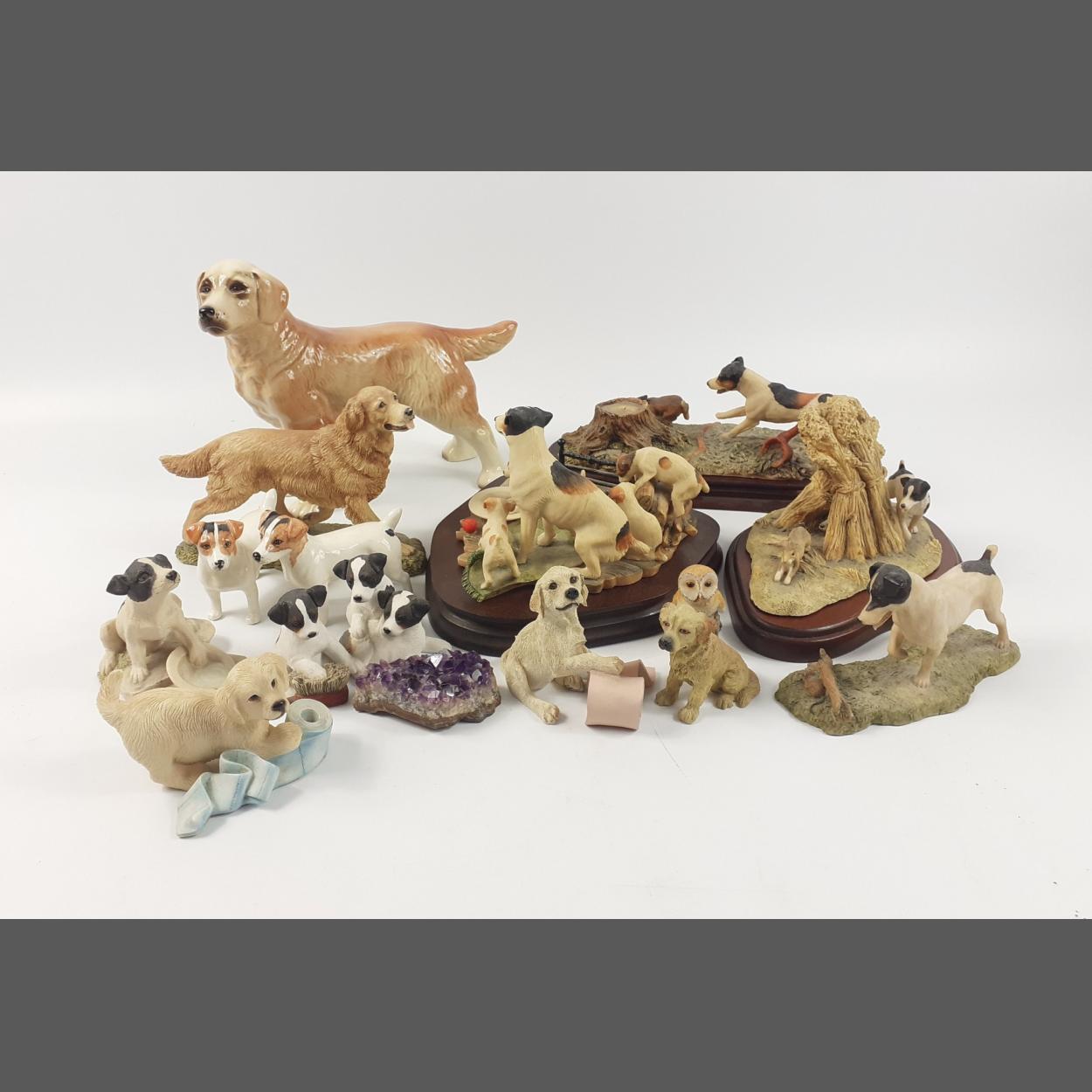 A collection of Border Fine Arts on the theme of dogs to include 'Chasing a hare' by A Wall 1981, 'Run, rabbit run' (JH42), Patch (JH22), plus various other models