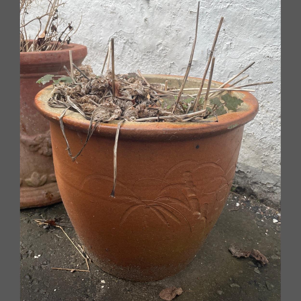 A nice large brown ceramic garden planter - height 32cm x diameter 40cm
