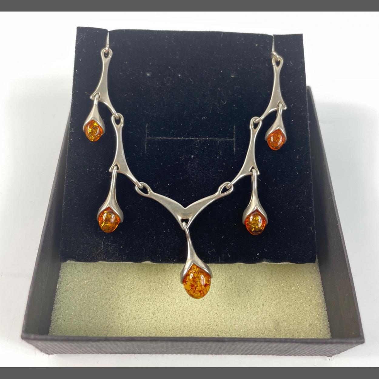 A vintage 925 stamped silver and amber necklace length 42cm approx, gross weight 11.40g