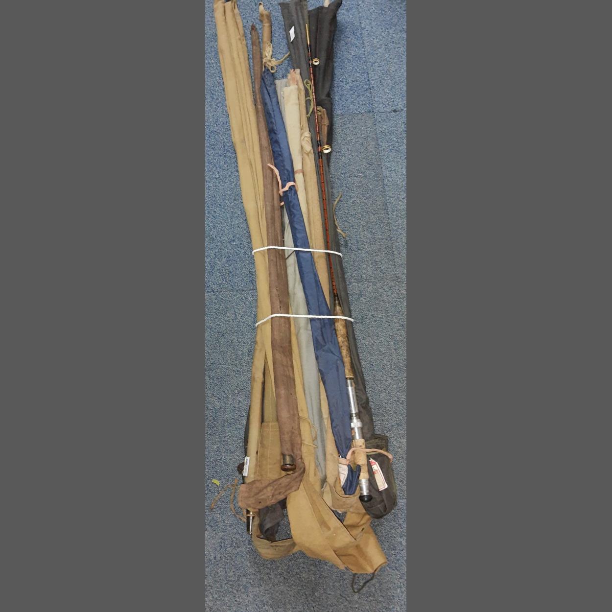 A large bundle of thirteen vintage FISHING RODS to include a FORREST of KELSO (29010),