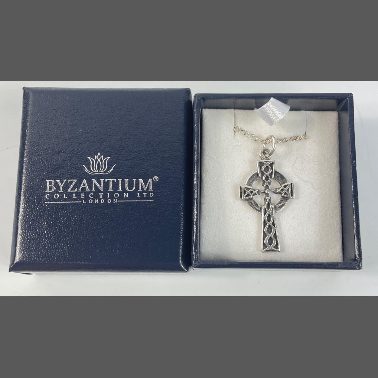A 925 stamped silver chain with Celtic cross pendant, chain 50cm approx, pendant 3cm long, weight 4.75g